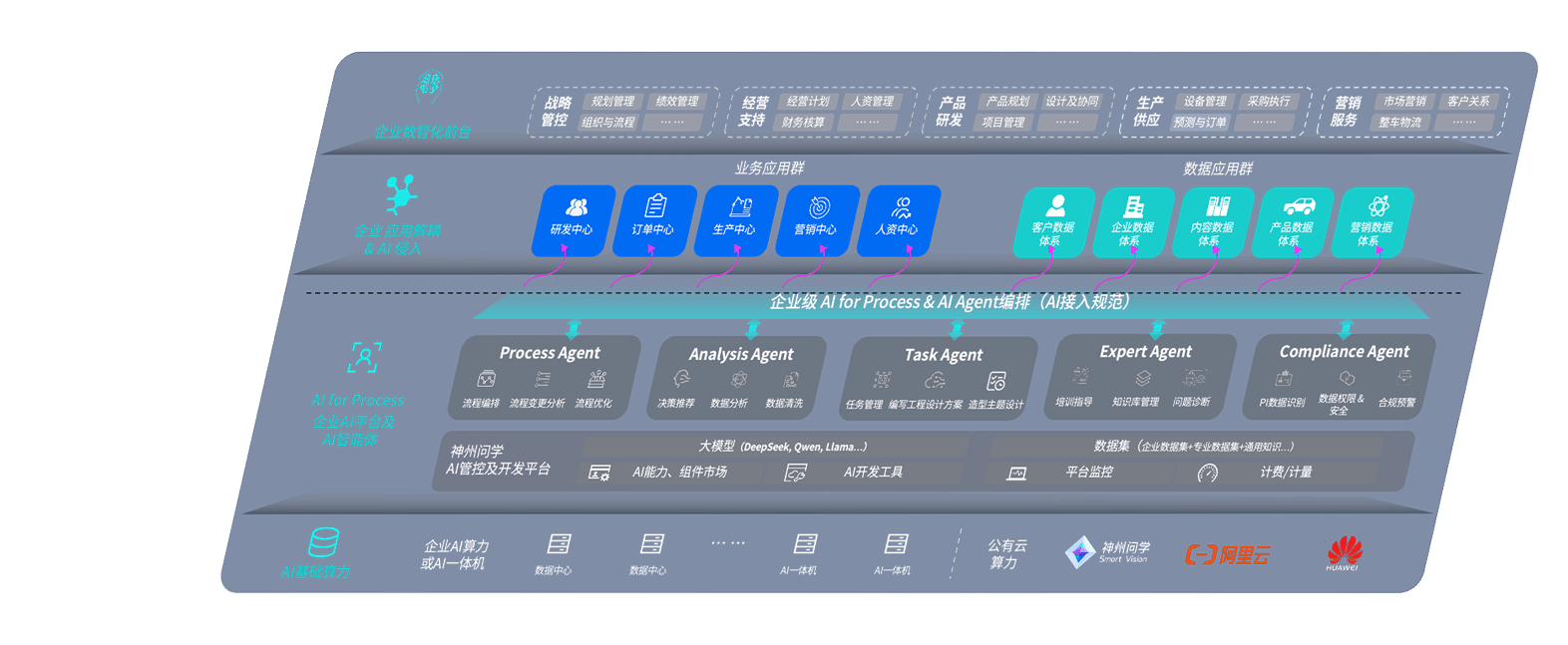 乐金城问学智车解决方案是一套基于AI技术的汽车行业智能化系统,,,覆盖从底层算力到顶层AI应用的全栈方案。。方案由算力层、、、模型层和应用层组成:算力层,,方案支持多种一体机配置,,,具备云端灵活部署、、、、多云适配以及动态优化计算资源的能力;模型层,,,,乐金城问学平台版提供了企业级AI应用一站式构建与管理平台,,,支持基于后训练强化技术的汽车企业专属模型的训练、、、、评测和运营;应用层,,,,乐金城问学DeepSeek版提供包括超级员工、、、、智能招采、、、智能营销、、、智能客服、、AI for BI等一系列解决方案,,可助力汽车行业实现数字化转型,,,让管理更智能、、响应更敏捷。。